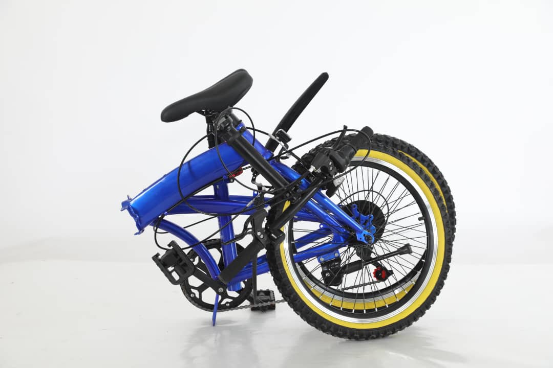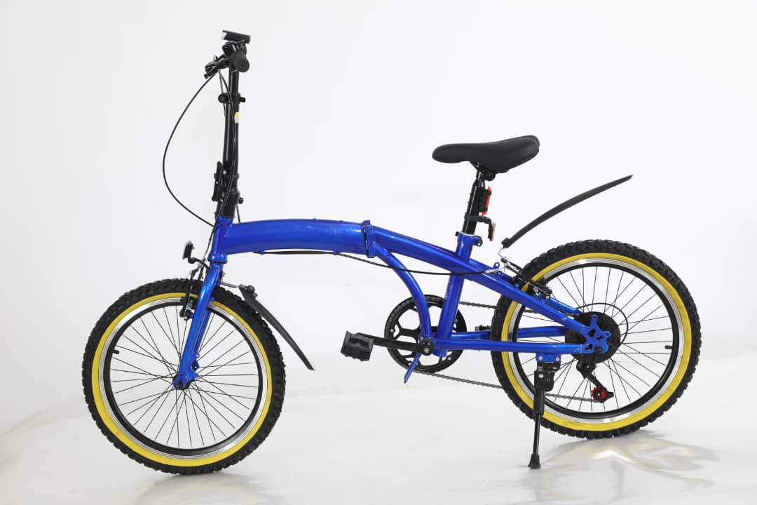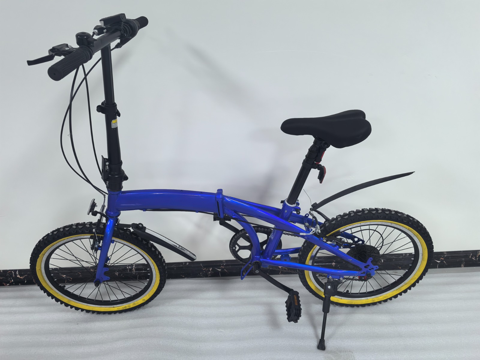 Le vélo pliant TJ-BMX-21 est un vélo urbain et de trekking, idéal pour des trajets de courte et longue distance sur route goudronnée ou sentier forestier. Ultra compact, il se transporte facilement grâce à son système de pliage rapide. Il pourra ainsi rentrer dans votre coffre de voiture ou dans votre appartement. Ce vélo pliant est léger grâce à son cadre acier, il est équipé, d'une transmission(dérailleur) 7 vitesses “tres bonne qualité ” avec poignée Shift, des roues de 20 pouces, de garde-boues et d'une béquille ,pédales pliantes. Son système de freinage est de type V-Brake. Il pèse 13 kg et est livré avec un éclairage portatif à LED avant et arrière , avec réflecteurs avant et arrière. Les points forts de ce produit • Compact • Se transporte facilement • Système de pliage rapide • Cadre acier incassable